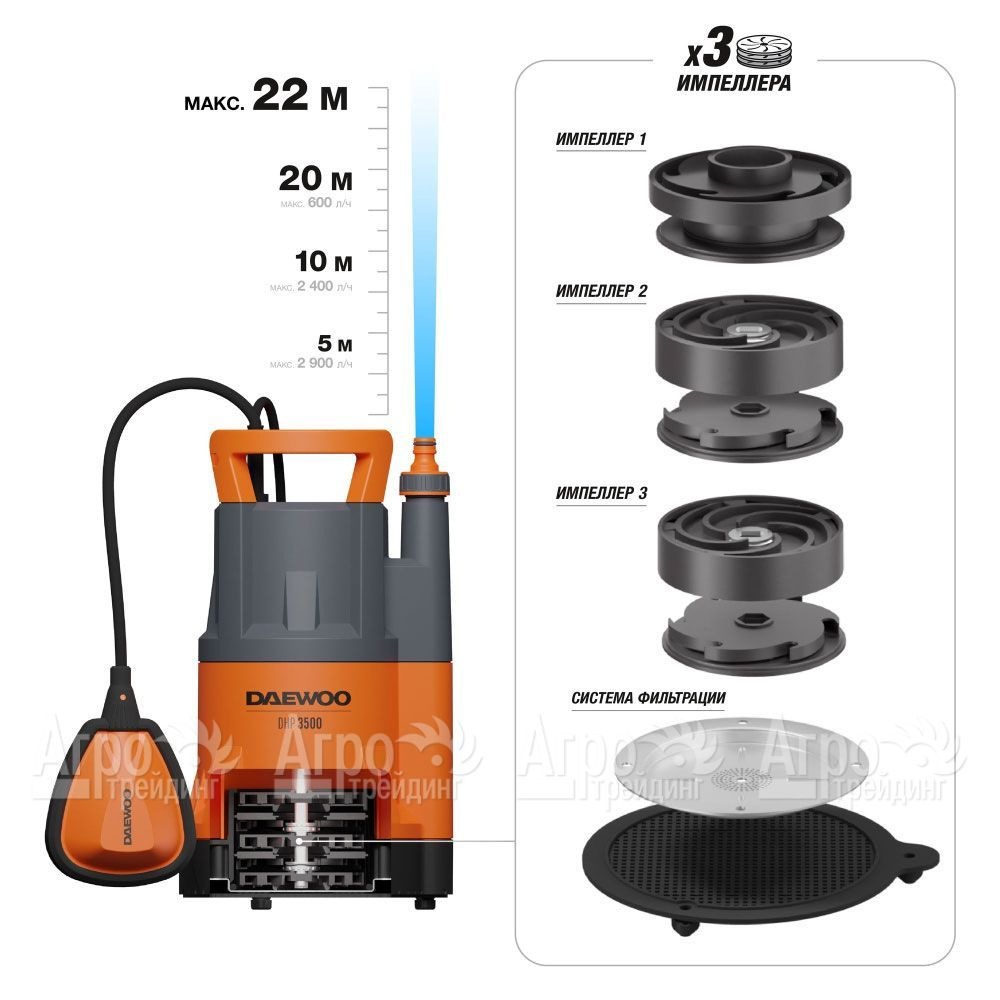 Насос высоконапорный колодезный Daewoo DHP 3500